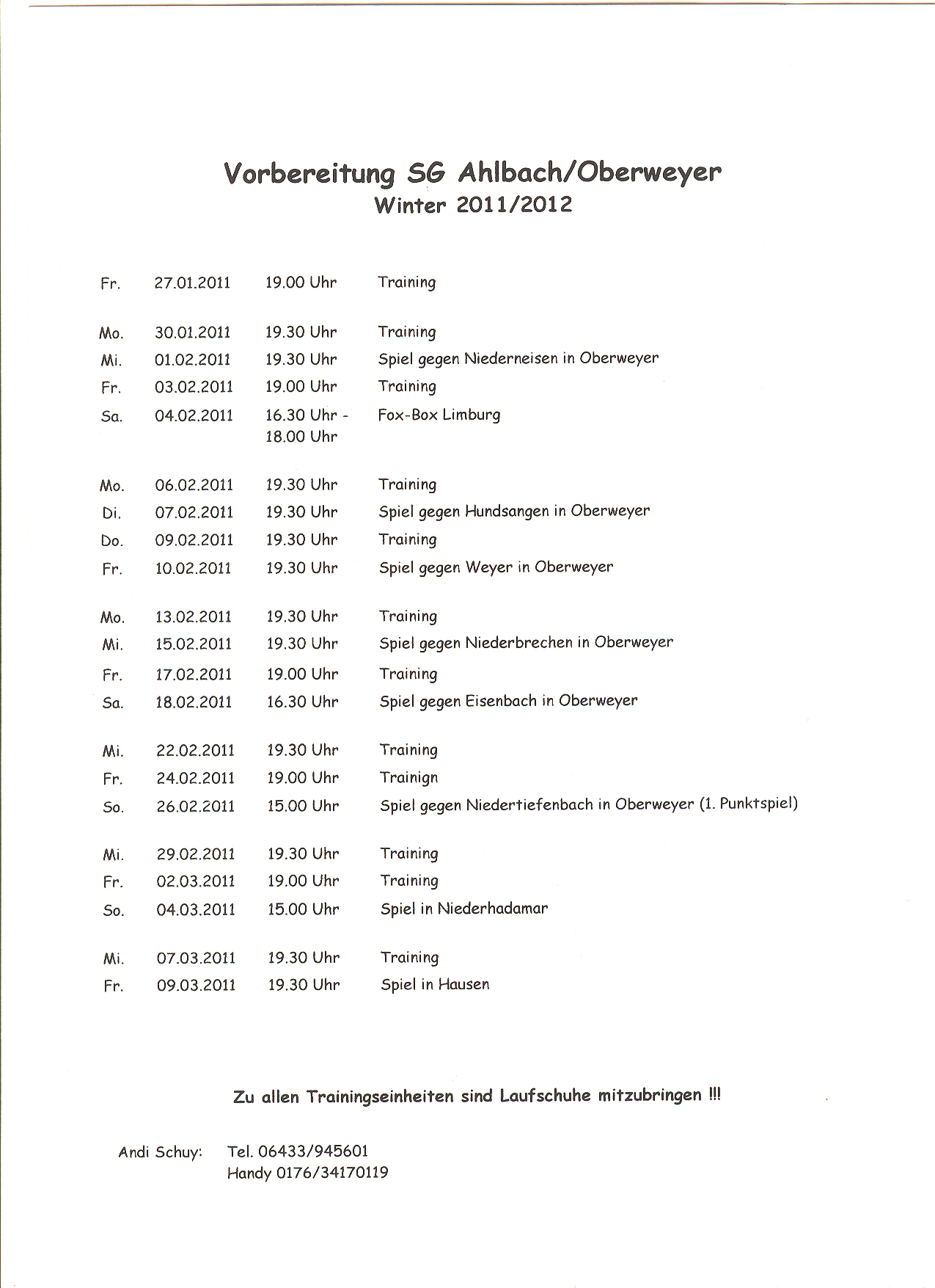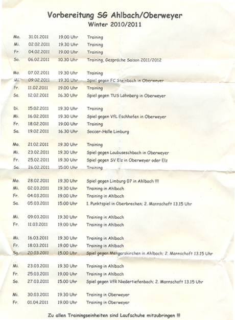 >> Plan zur Wintervorbereitung Saison 2011/2012 <<