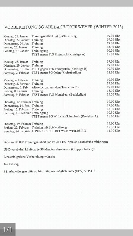>> Plan zur Sommervorbereitung Saison 2012/2013 <<