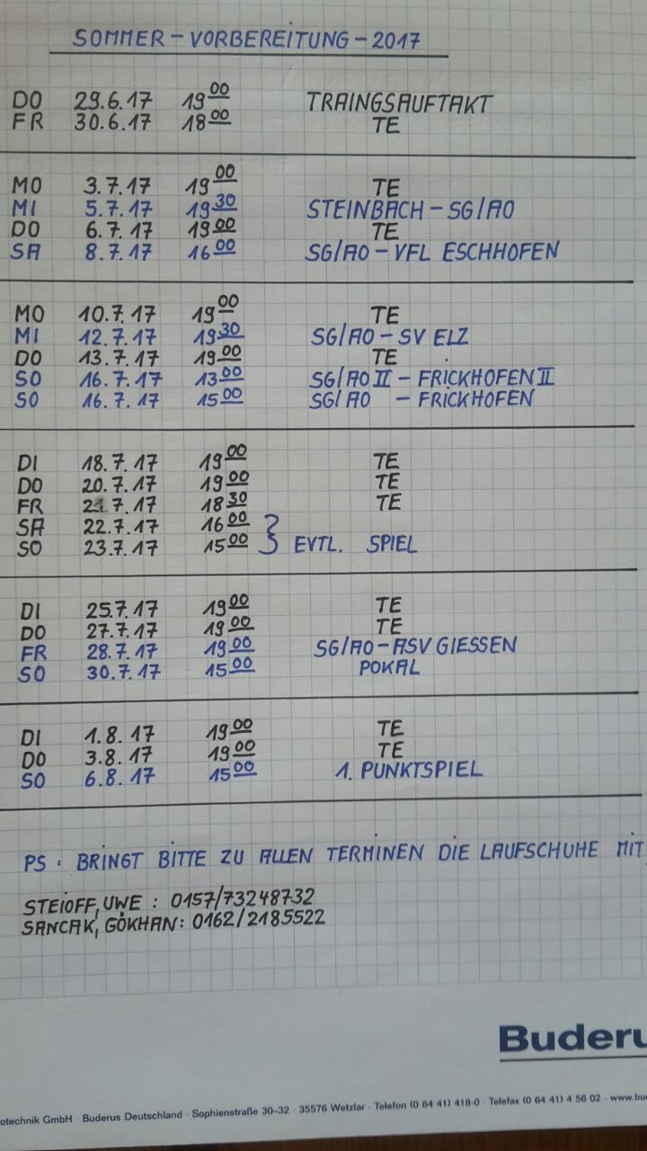 >> Plan zur Sommervorbereitung Saison 2015/2016 <<